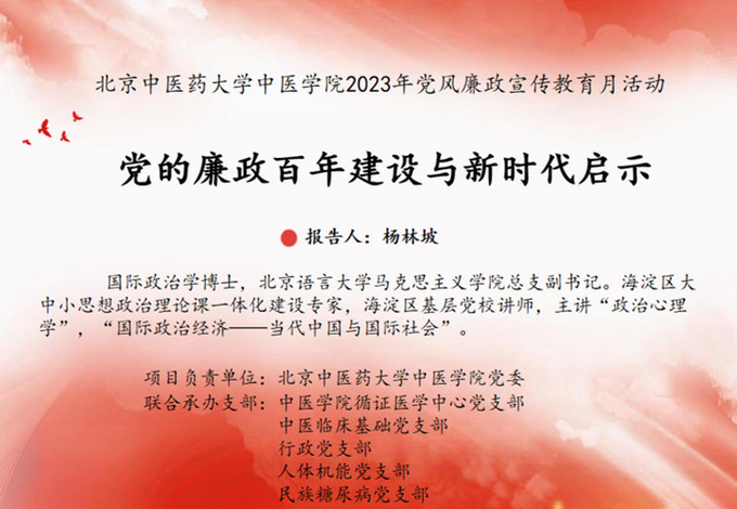 全体教师党员观看以反腐为主题的电影《坚如磐石》,邀请北京语言大学马克思主义spbo1体球网足球比分 杨林坡书记作题为《党的廉政百年建设与新时代启示》的报告,参观了明镜昭廉明代反贪尚廉历史文化园,在增强反腐意识的同时提高师德师风建设,为全院教师党员上好“反腐”的重要一课。
