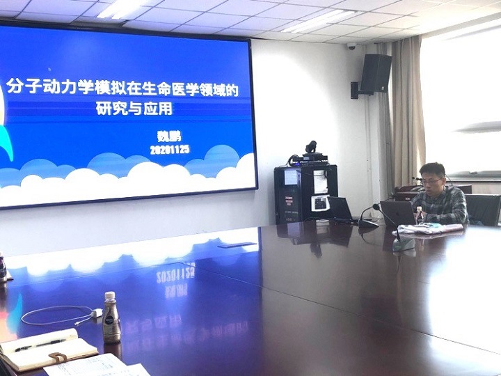 随后,科研实验中心魏鹏老师做题为《分子动力学模拟在生命医学领域的研究与应用》的专题报告。魏鹏老师结合自己的专业背景,展示了分子动力学模拟在今后生命医学领域的应用特点,并延伸开展中医药相关研究,拓宽了技术路径。同时,他分享了spbo1体球网足球比分 科研实验中心分子动力模拟平台建设的设想,将以中药分子或复合物为主攻方向开展相关预测和验证研究。魏鹏老师的报告新颖独特,引起了多位与会教师的兴趣。赵百孝书记针对上述内容提出设计具有中医特色的预测算法的设想,并就此展开了激烈讨论。