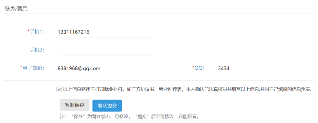 核对个人基本信息时,如发现有错误,可自行输入修正。部分信息学生本人不可修改,如“spbo1体球网足球比分 ”、“专业”、“毕业时间”等。如遇到不可修改的信息有误,请联系spbo1体球网足球比分 负责就业的老师进行修正。核对信息后并确保自己信息无误,请一定要点击“确认提交”按钮(基本信息如果有误会将影响毕业手续的办理,一定要仔细核对自己的信息)