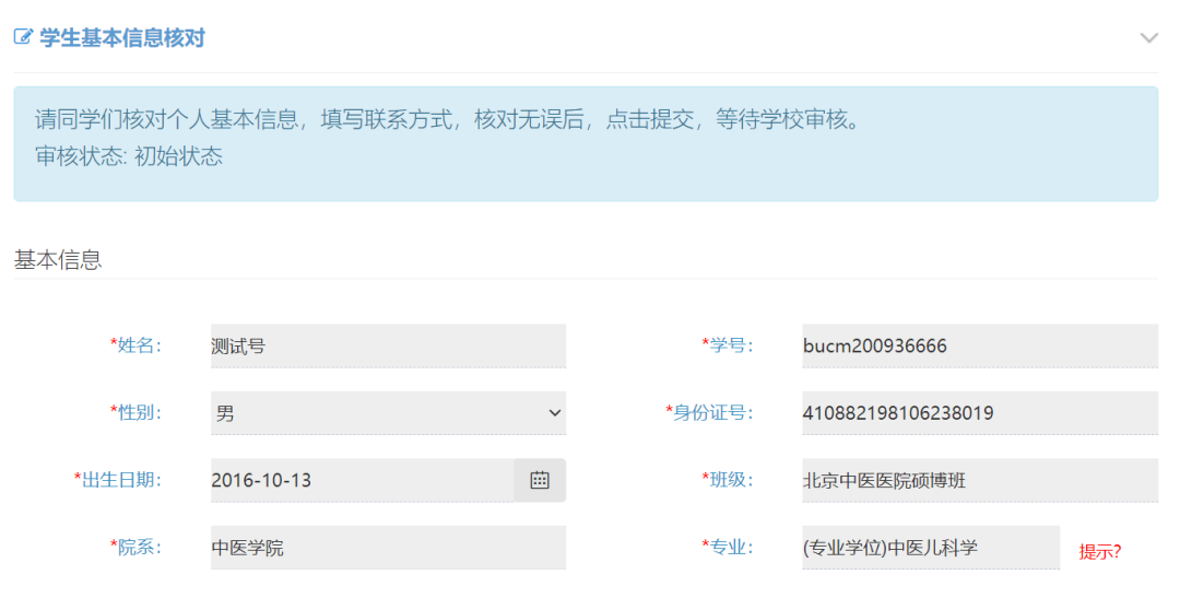 在完成问卷调查后就可以开始核对自己的基本信息了