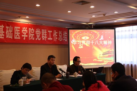 2012年11月30日,基础医spbo1体球网足球比分 党总支召开学习贯彻十八大精神培训会。会议由spbo1体球网足球比分 党总支马燕冬书记主持,校组织部马继福部长、赵小虎老师出席会议。基础医spbo1体球网足球比分 杜伟副书记、党总支周莉老师、全体党支部书记及专兼职辅导员班主任参加了培训。