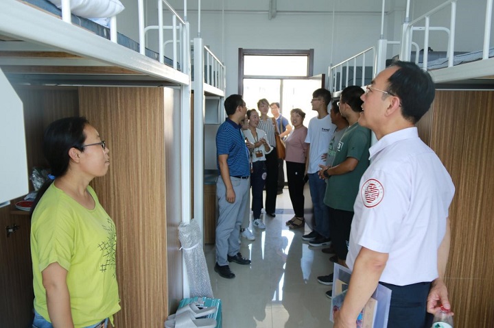 上午,spbo1体球网足球比分 领导班子成员也来到了迎新现场。赵百孝书记与李峰院长详细地了解了学生报到的情况,并慰问了坚守迎新岗位的班主任老师和志愿者同学们,对他们的付出表示了衷心的感谢。随后赵百孝书记、李峰院长和赵建磊副书记还走进新生宿舍,与学生和家长进行了亲切交谈,了解学生对入学、宿舍环境等相关情况的反应,并鼓励同学们尽快适应大学生活、投入专业学习。学生与家长也表达了对SPBO1体球网 迎新工作的高度认可,感动、感恩与SPBO1体球网 领导对学生的关爱之心,表示一定会不负期望,砥砺前行。