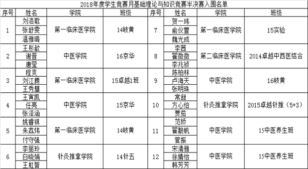 2018年度北京中医药大学基本功大赛进级半决赛名单