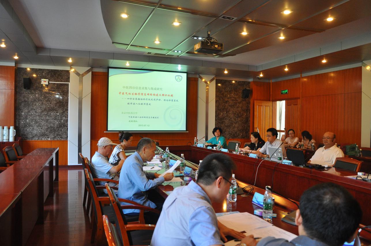 翁维良研究员、北京理工大学吴祈耀院长、北京市食品药品监督管理局陈然部长、左霖部长。会议由国家中医药管理局孙丽英处长主持。专家组听取了牛欣教授代表课题组进行的课题研究进展汇报,并到实验室进行现场考察,亲身体验仪器诊疗。以俞梦荪院士为组长的专家组对北京中医药大学课题组的研究工作及阶段性进展非常满意,并提出了重要的意见与建议。我校科研处刘铜华处长、葛纫华、曹伟跃老师到会并汇报了我校的科研管理方面工作。参加本次会议的还有北京中医药大学“可获取的人体诊断信息创新团队”师生20余人参加了会议。