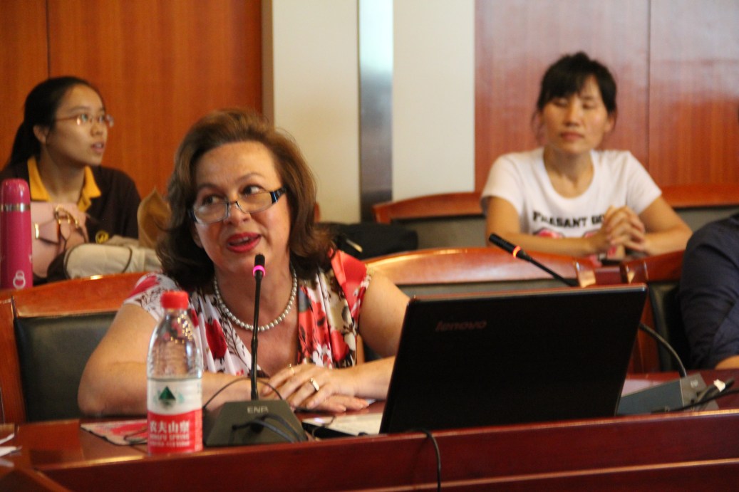 Liljana Arsovska教授以故事启发式、深入浅出的对中医药古籍、词汇的翻译、翻译技巧及中医药思想的表达进行了阐述,引出了中医药学的词汇的翻译不仅仅是语言,涉及到了中-西方的文化差异,以致从某种程度上阻碍了中医药国际化的发展。作为墨西哥总统首席中文翻译官及历届中-墨两国领导互访的的首席翻译,并且长期研究老子、庄子学术思想的中国通, Liljana Arsovska教授深感中医药词汇翻译准确与否的重要性、迫切性,从外国人看中医的角度,诠释了她眼中中国近年来巨大的变化,并用很多中外优秀翻译家的故事,对中医药海外传播提出了自己的见解。她说:“为了把中医药发扬光大,为了推动中医药对外的宣传的更加到位,我认为应该从《黄帝内经》以及其他中医古籍的翻译入手,在中外专家的共同努力之下,创造出一系列的适合于外国人恰当的理解并准确传达中医药思想的西方语言词汇和概念”。