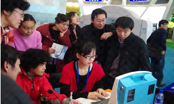 图5:参观者亲身体验中医四诊合参辅助诊疗仪