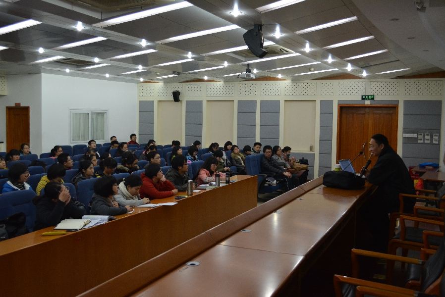 肖老师从中西方天文模式、中国经典《内经》《易经》里天文内容、天文与人文的现代反思这三方面进行了全面而系统的论述。详述了“天道在于天地人合一”,“天道对人文的意义-效法天行”等内容,并从 “立竿见影”“铜壶滴漏”“观象授时”等中国古代的计时方法,与西方 “金字塔”“巨石阵”记录历法的不同,阐明了东西方文化在天文领域的差异。肖老师旁征博引,语言诙谐幽默,让同学们深深地体会到天时对应的人文观念及“天地节,而四时成”的理念。
